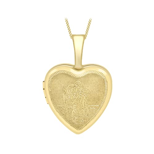 CARISSIMA Women's 9 ct Yellow Gold Small Etched St Christopher Heart Locket on Curb Chain of Length 46 cm