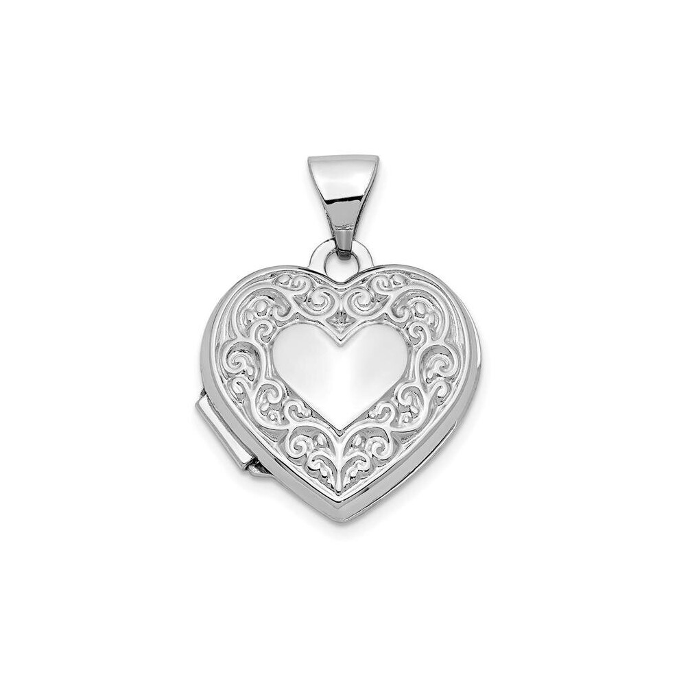 14K White Gold Scroll Design Heart Locket Pendant