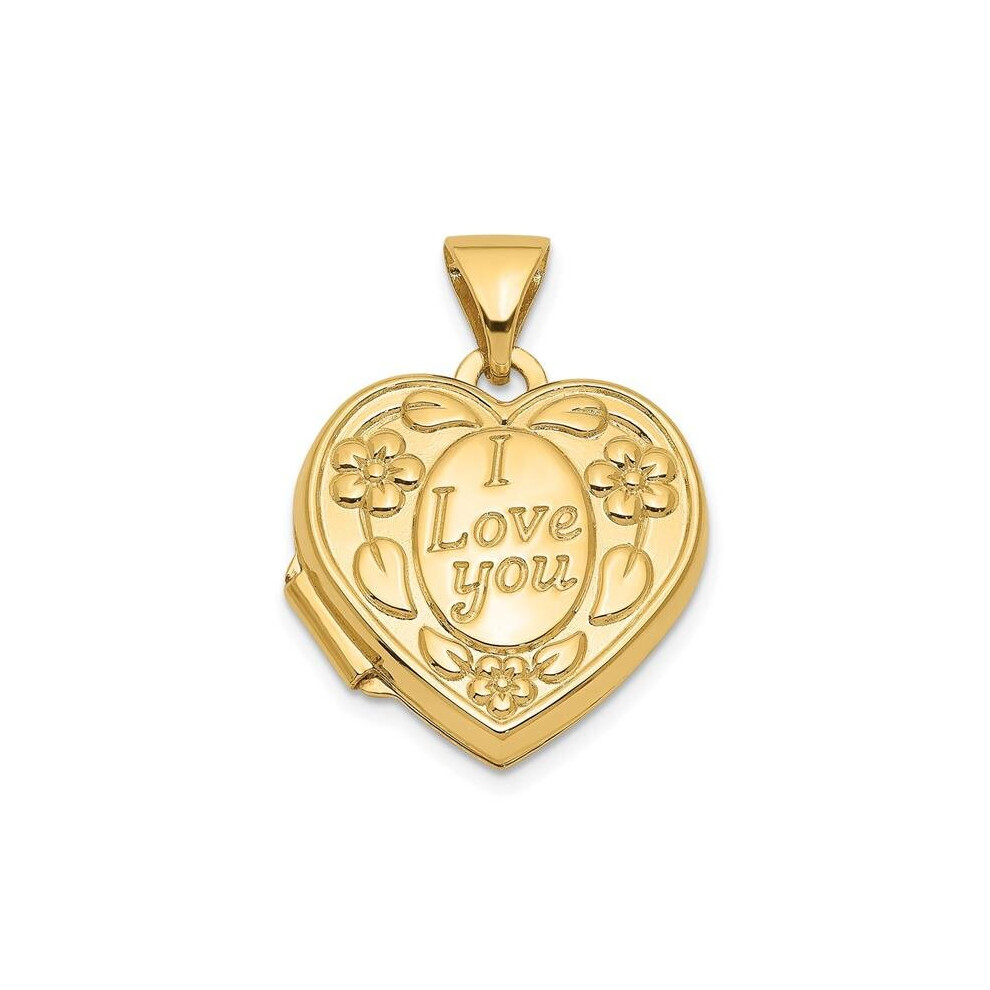 14K Yellow Gold Floral I Love You Heart Locket Pendant