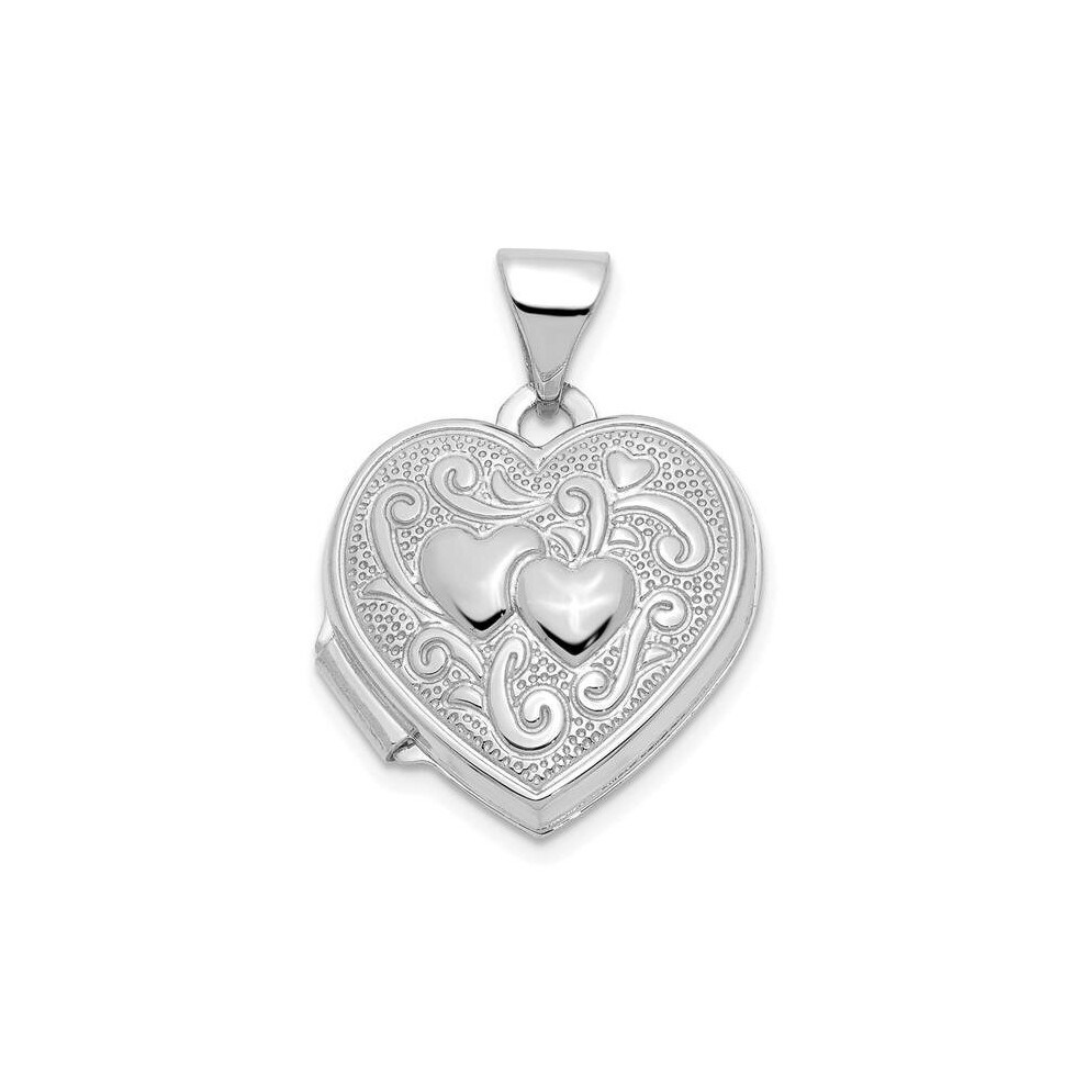 Quality Gold QLS1044 Sterling Silver Rhodium-Plated Swirled Love You Always 18 mm Heart Locket