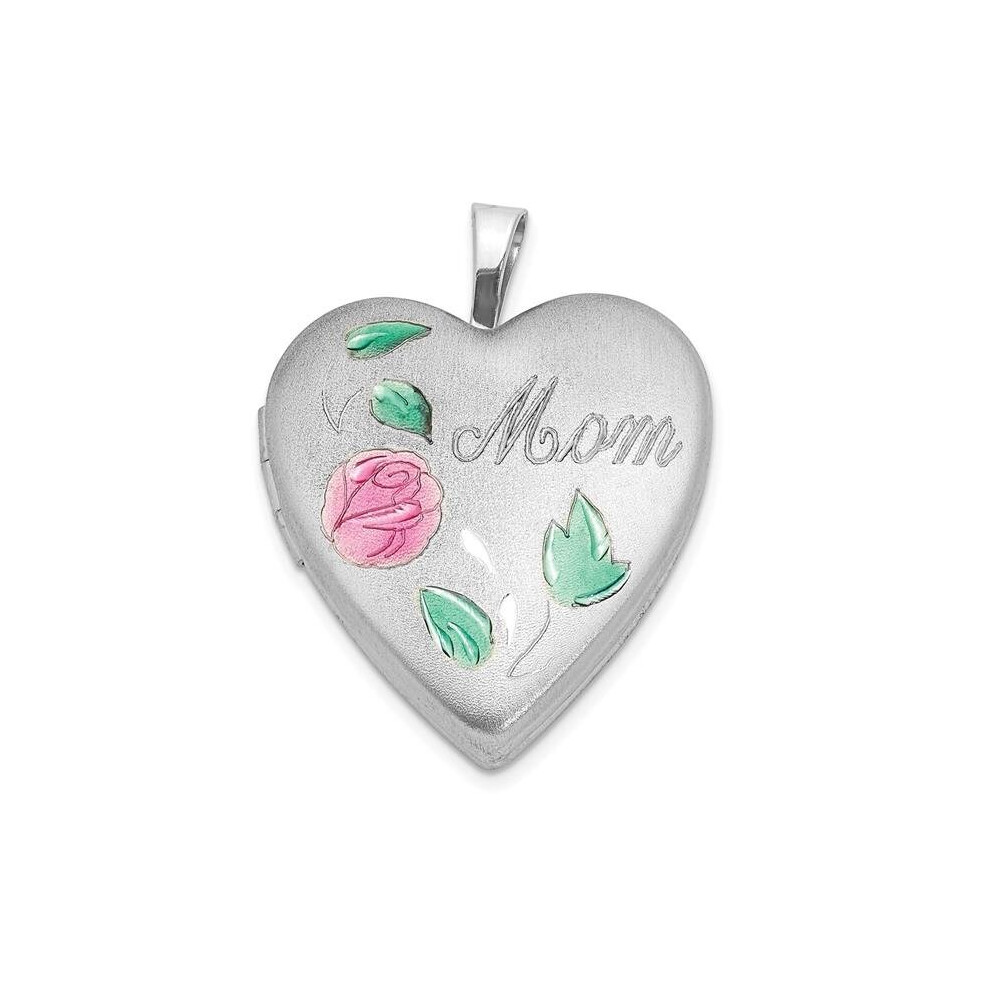 Finest Gold Sterling Silver Rhodium-Plated Enameled Flower with Mom 20 mm Heart Locket