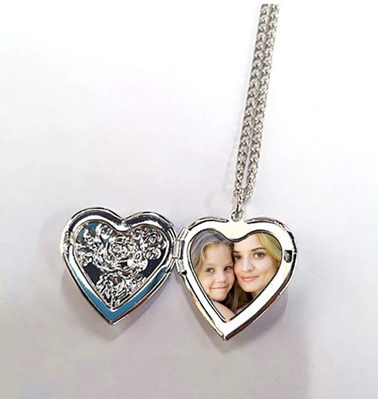 SOULMEET 9k 14k 18k White Gold Heart Rose Locket Necklace That Holds 2 Pictures Personalized Letters Engraved Custom Image Locket Gift (Custom photo & text)