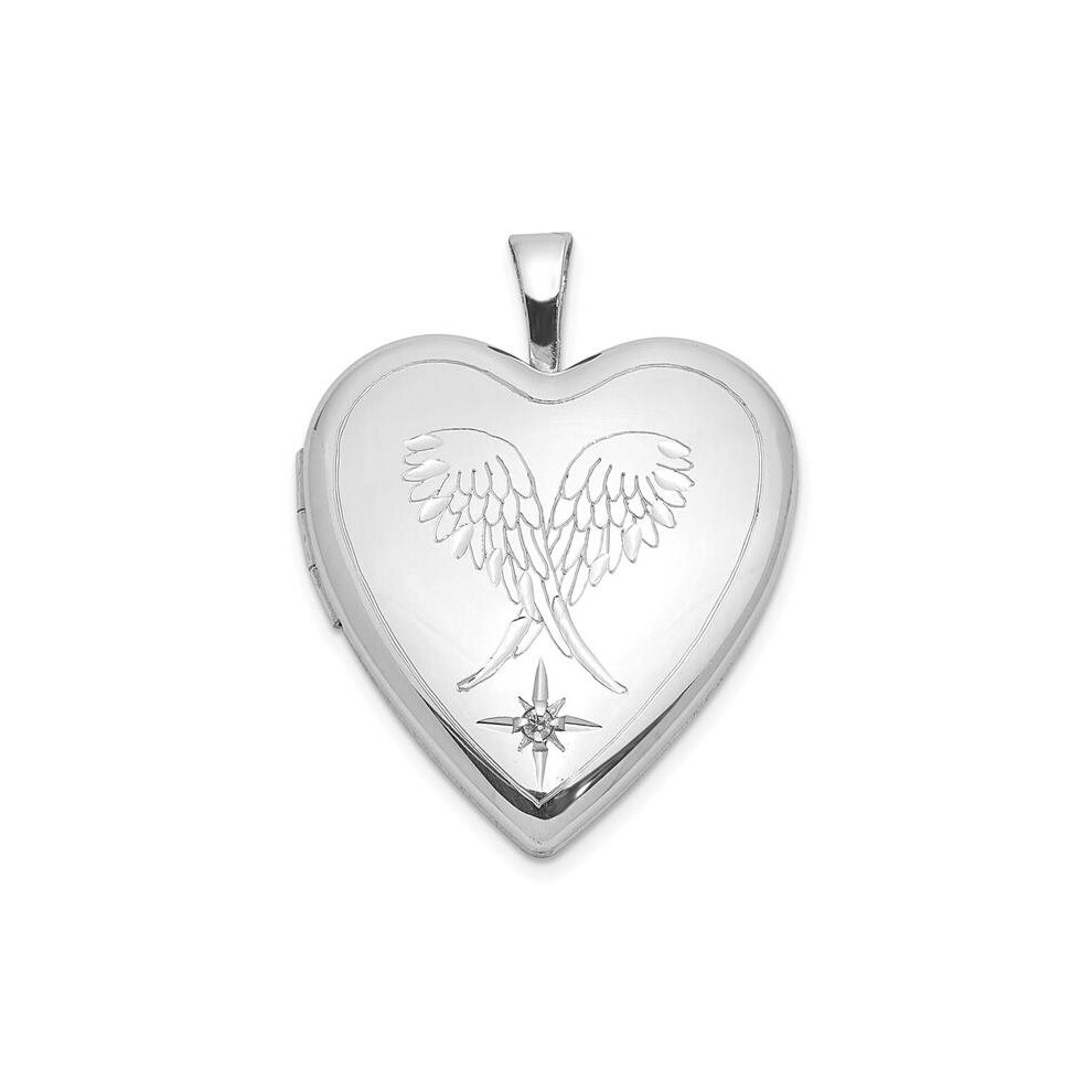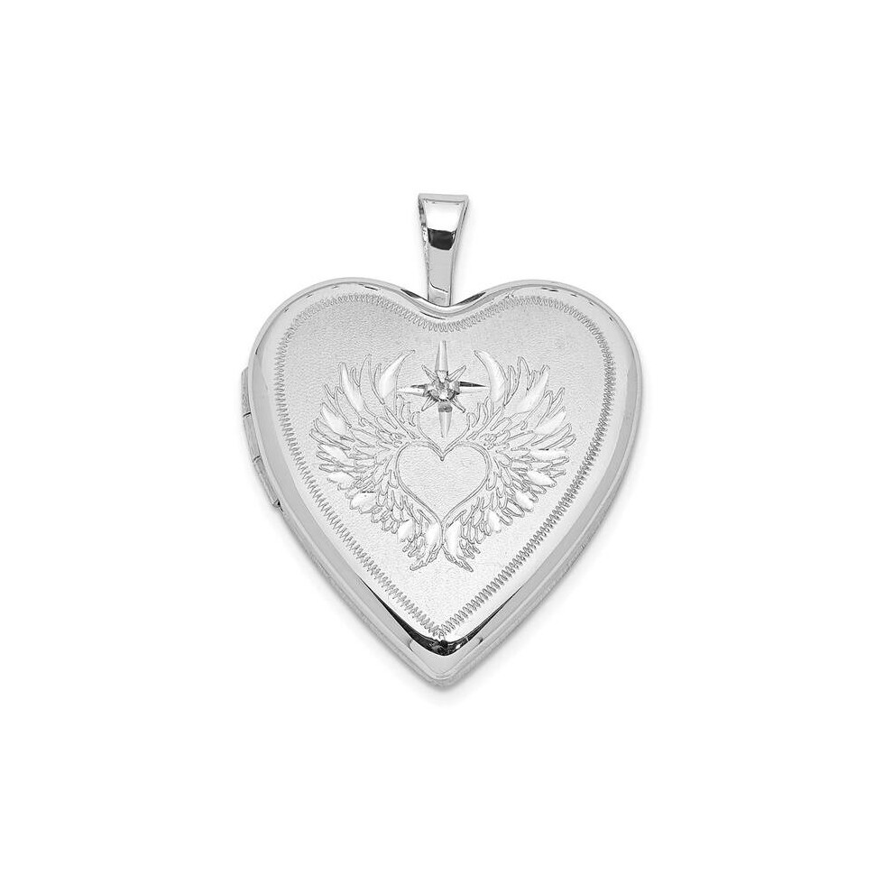 Finest Gold Sterling Silver Rhodium-Plated Diamond Wings with Heart 20 mm Heart Locket Pendant