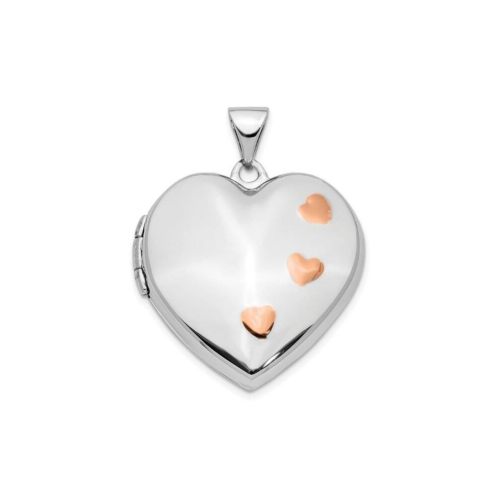 14K White Gold with Rose Rhodium 22 mm Heart Locket Pendant