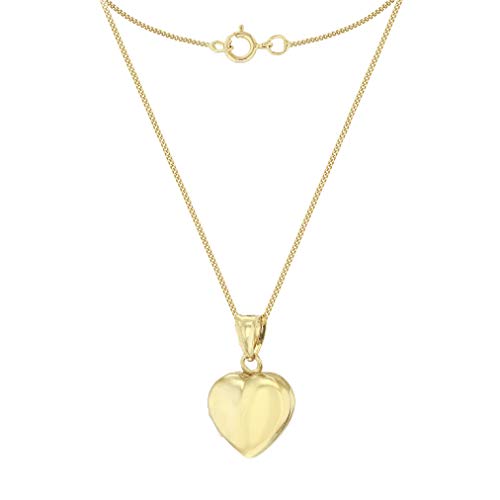 CARISSIMA Women's 9ct Yellow Gold 12.5mm x 20mm Plain Heart Locket on 9ct Yellow Gold 25 Diamond Cut Curb Chain 46cm/18'
