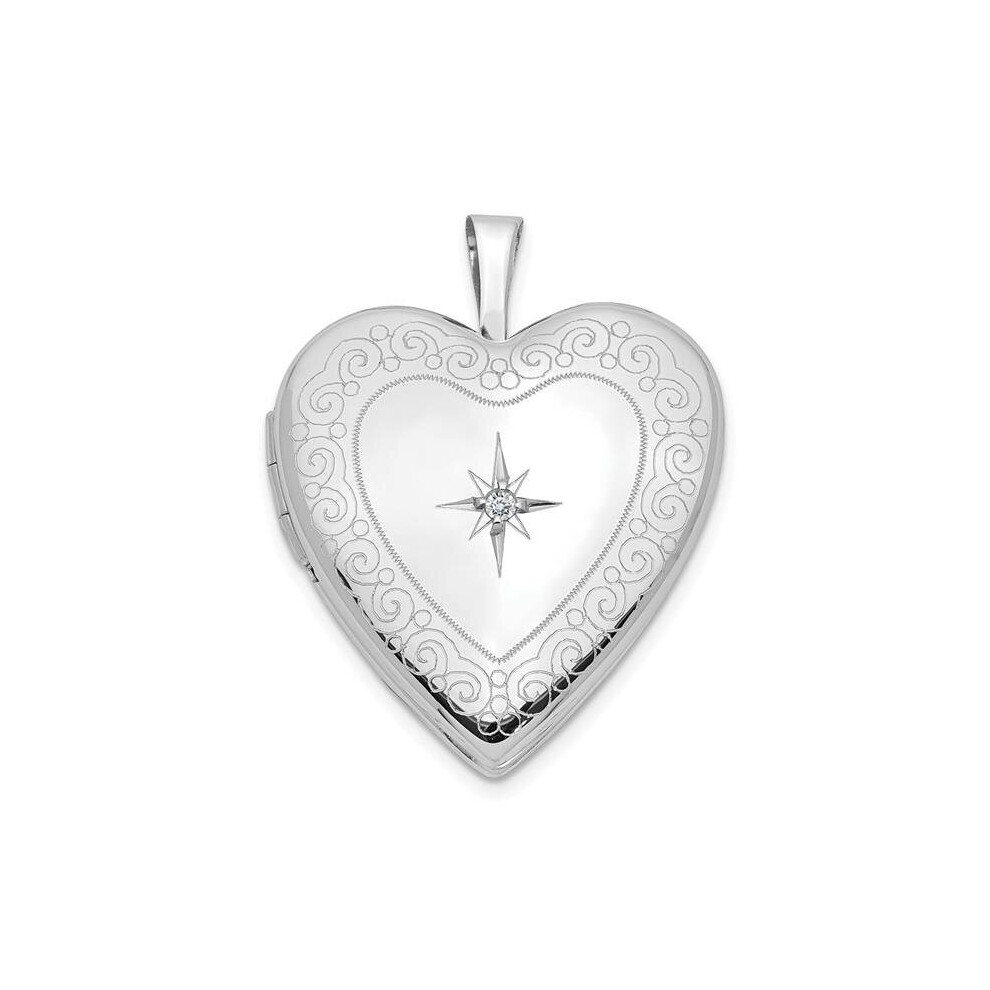 14K White Gold 0.01CT Diamond 15 mm Heart Locket
