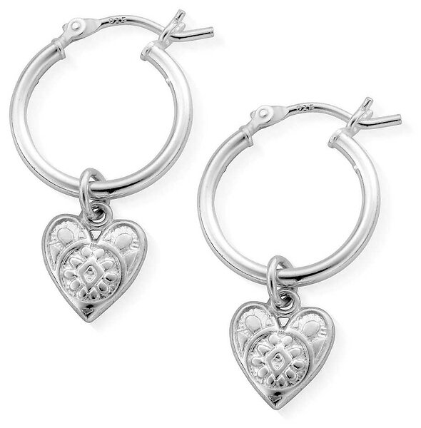 ChloBo SEH691 Women's Patterned Heart Hoops Sterling Jewellery