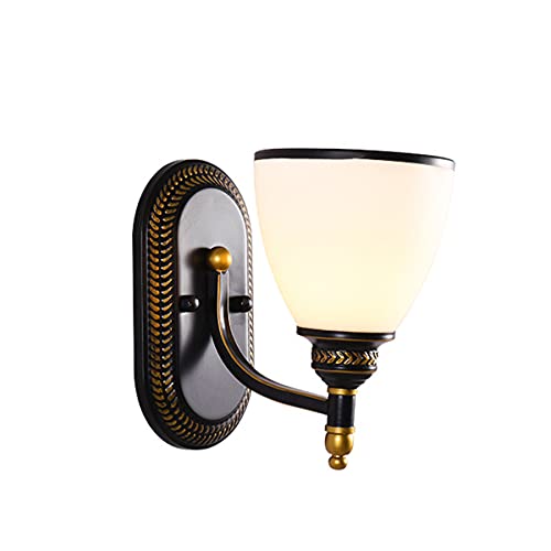 HQHYGM Wall Light Indoor Vintage Wall Lamp with White Globe Glass Shades Wall Decorative Creatively Wall Iron for Bedroom Hallway Living Room (Black Gold 1 Pack)