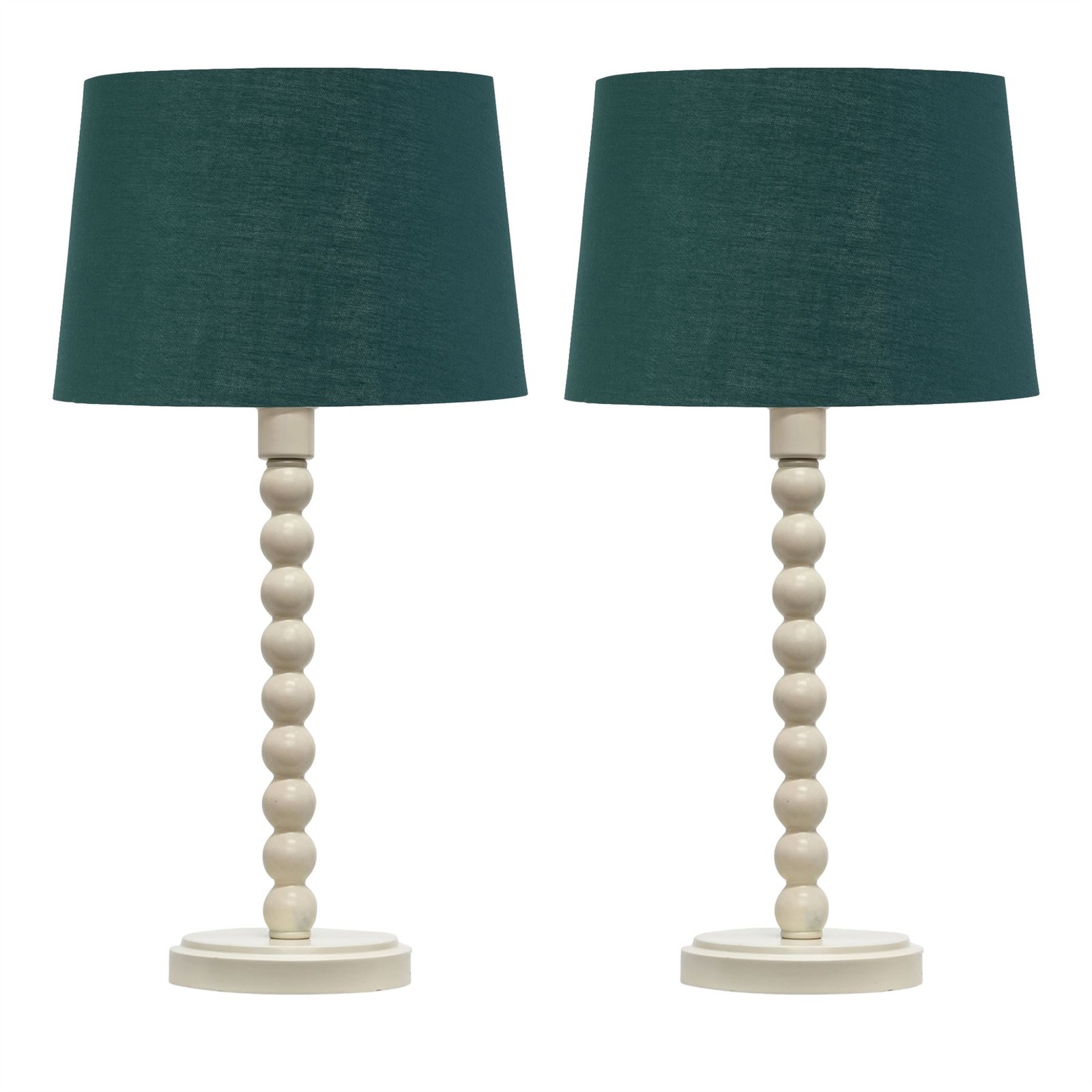 Set of 2 Cream Off White Table Lamp Bedside Lights with Dark Green & Gold Shades