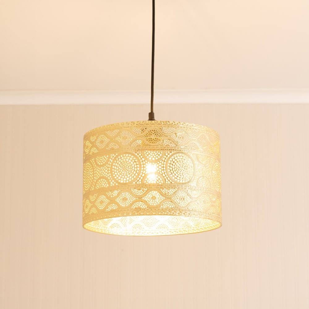 ValueLights Casablanca Pair of 31cm Gold Easy Fit Metal Drum Lamp Shades