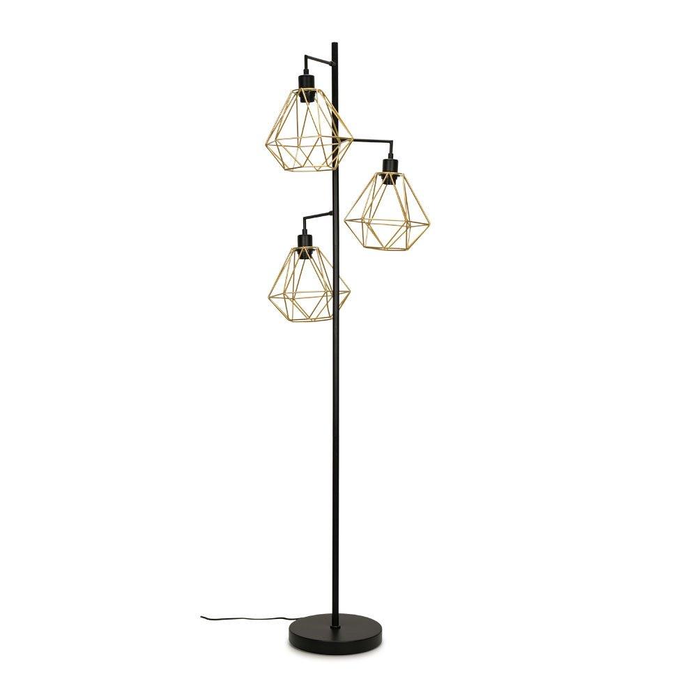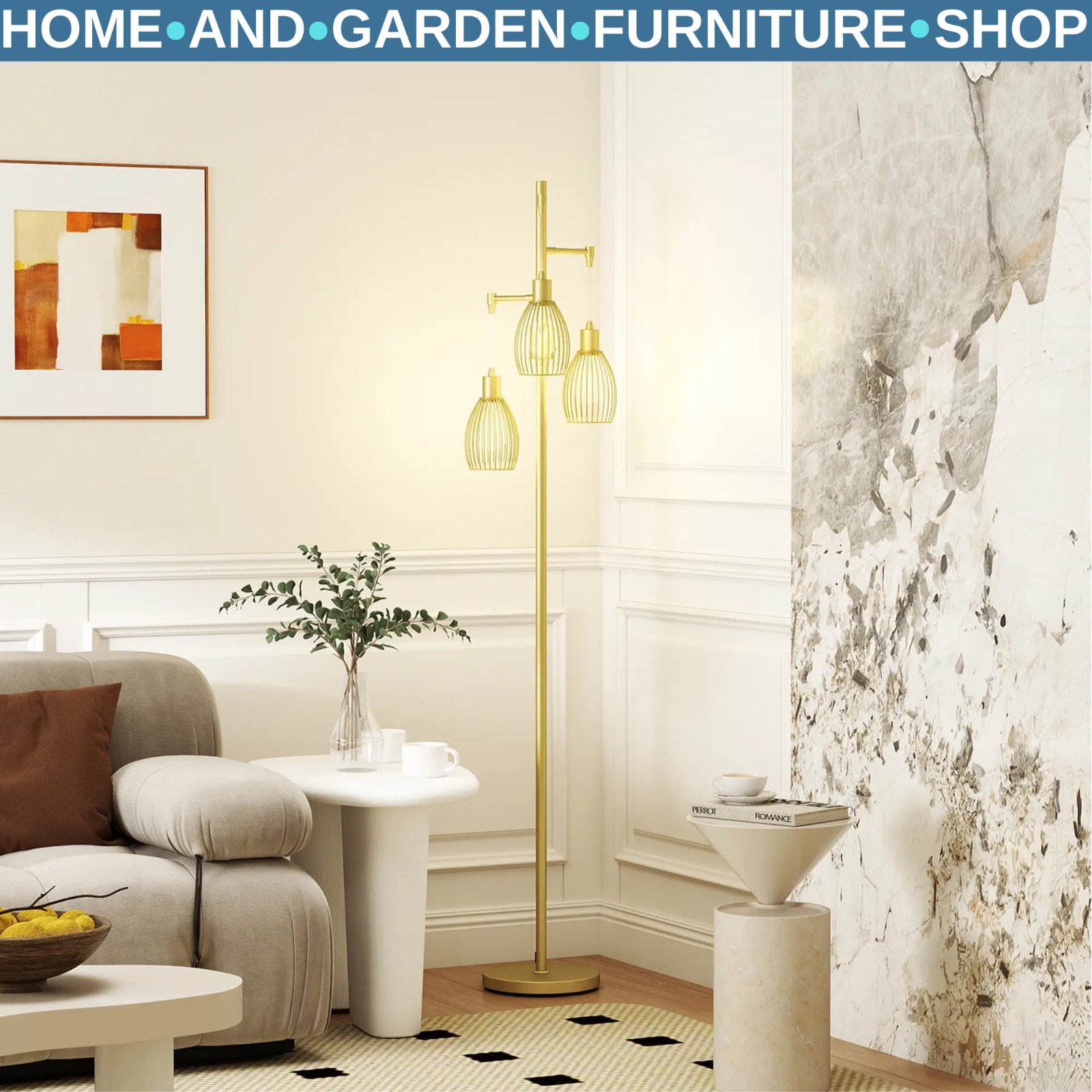 Gold Floor Lamp 3 Light Industrial Dimmable Standing Steel Wire Cage Shades HGFS
