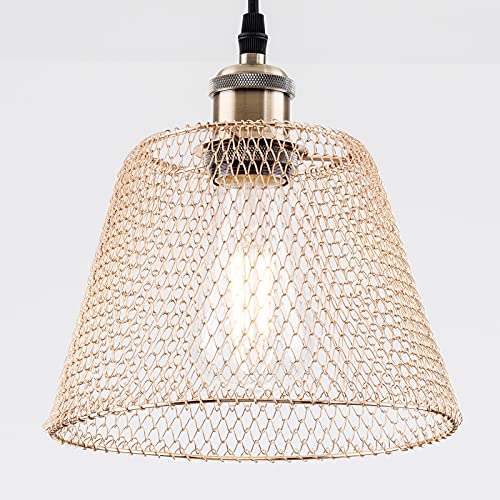 HARPER LIVING Pendant Ceiling Light Shade, Easy Fit Compact Vintage Lamp Shades, Gold Wire Mesh Basket, Metal Lampshades for Bedroom Ceiling Light Pendant (Gold)