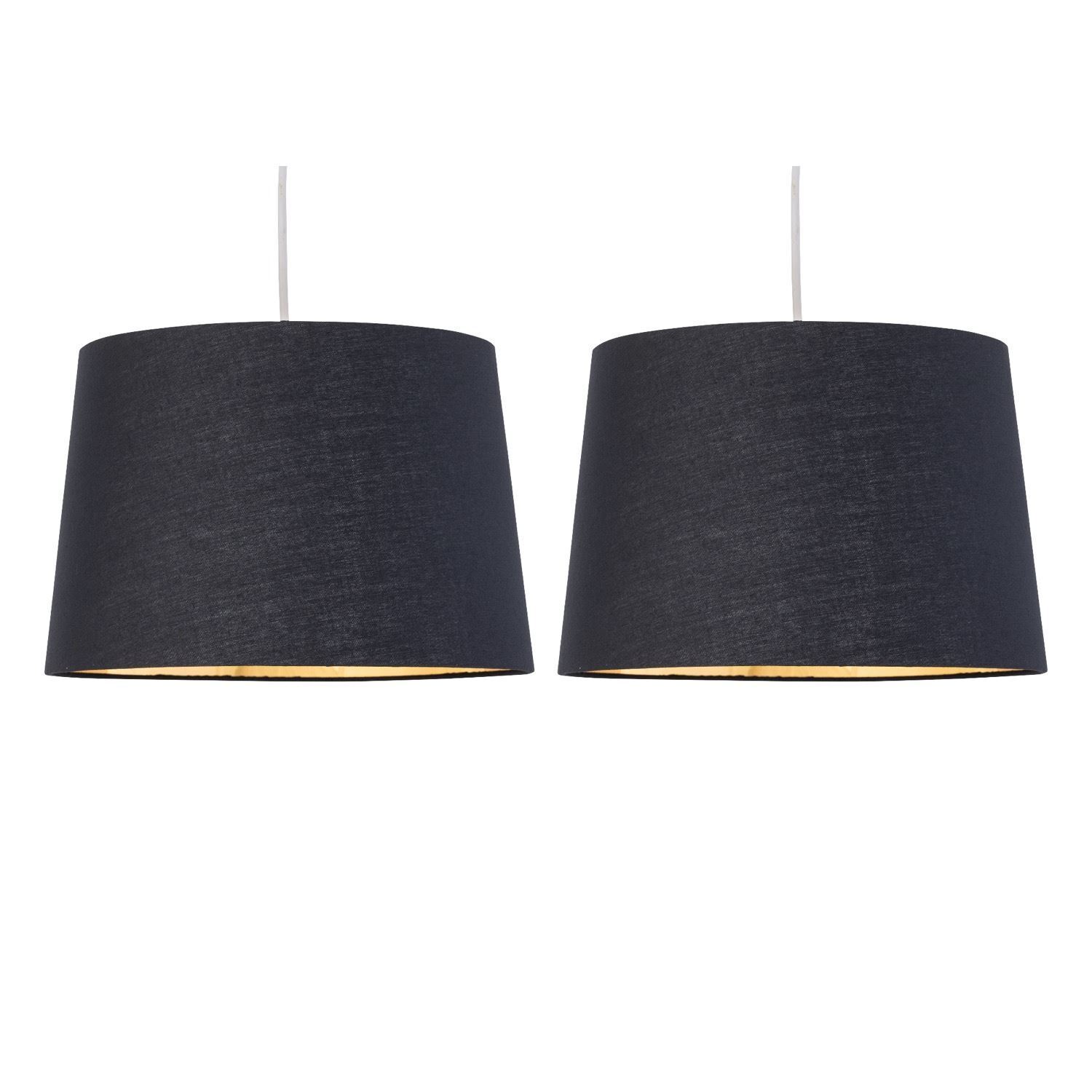 Set of 2 Black with Gold 28cm Easy Fit Pendant Lightshades Table Lamp Shades