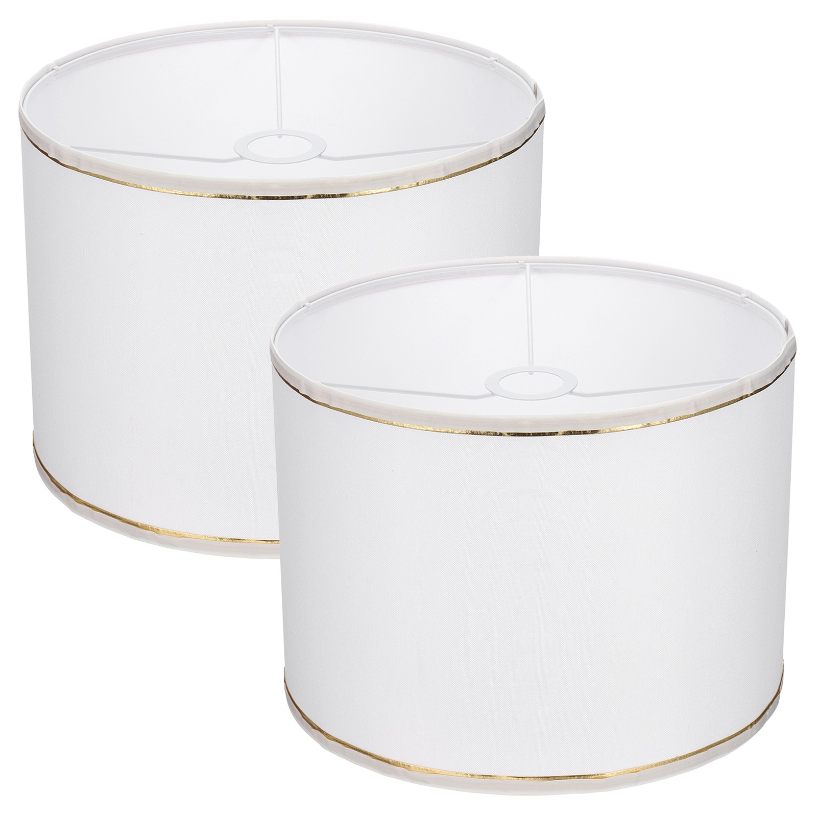 2Set Drum Lamp Shades, 13"x13"x10" Linen Lampshade E27 E26 E14, White Gold