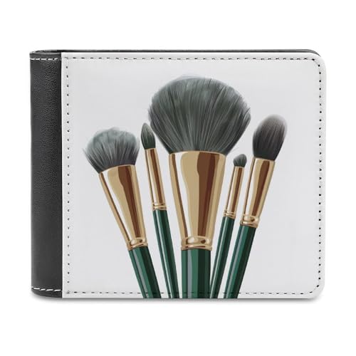 Makeup Brushes Emerald Green and Gold Soft PU Leather Bifold Wallet, Coin Purse Credit Pass Case, Durable Card-Holder Slim Billfold for Men Woman Money Storage