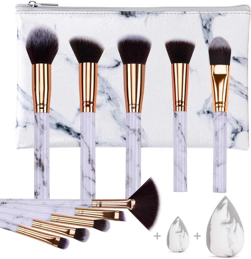 Makeup Brushes HEYMKGO Professional Marble Brush Set, Soft White,Gold