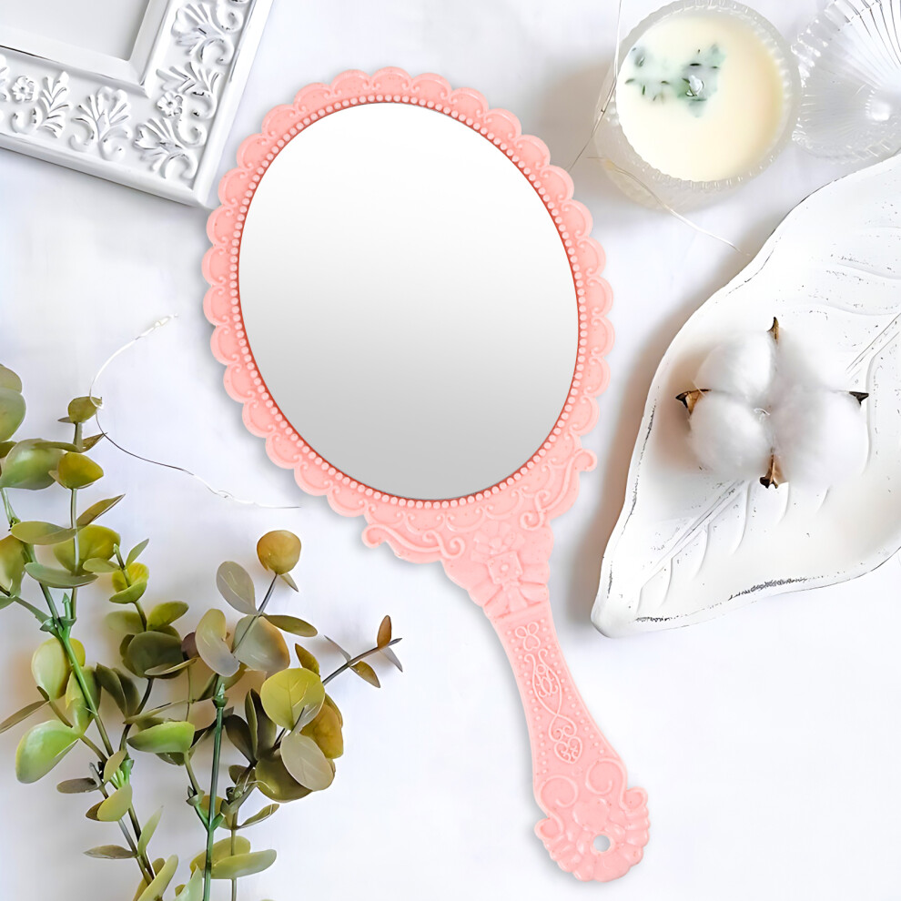 KABAKE Vintage Hand Held Mirror, Vanity Rose Gold Makeup Mirror, Compact Travel Handheld Mirros, Gift for Mom, Wife, Girl Friend (Pink)