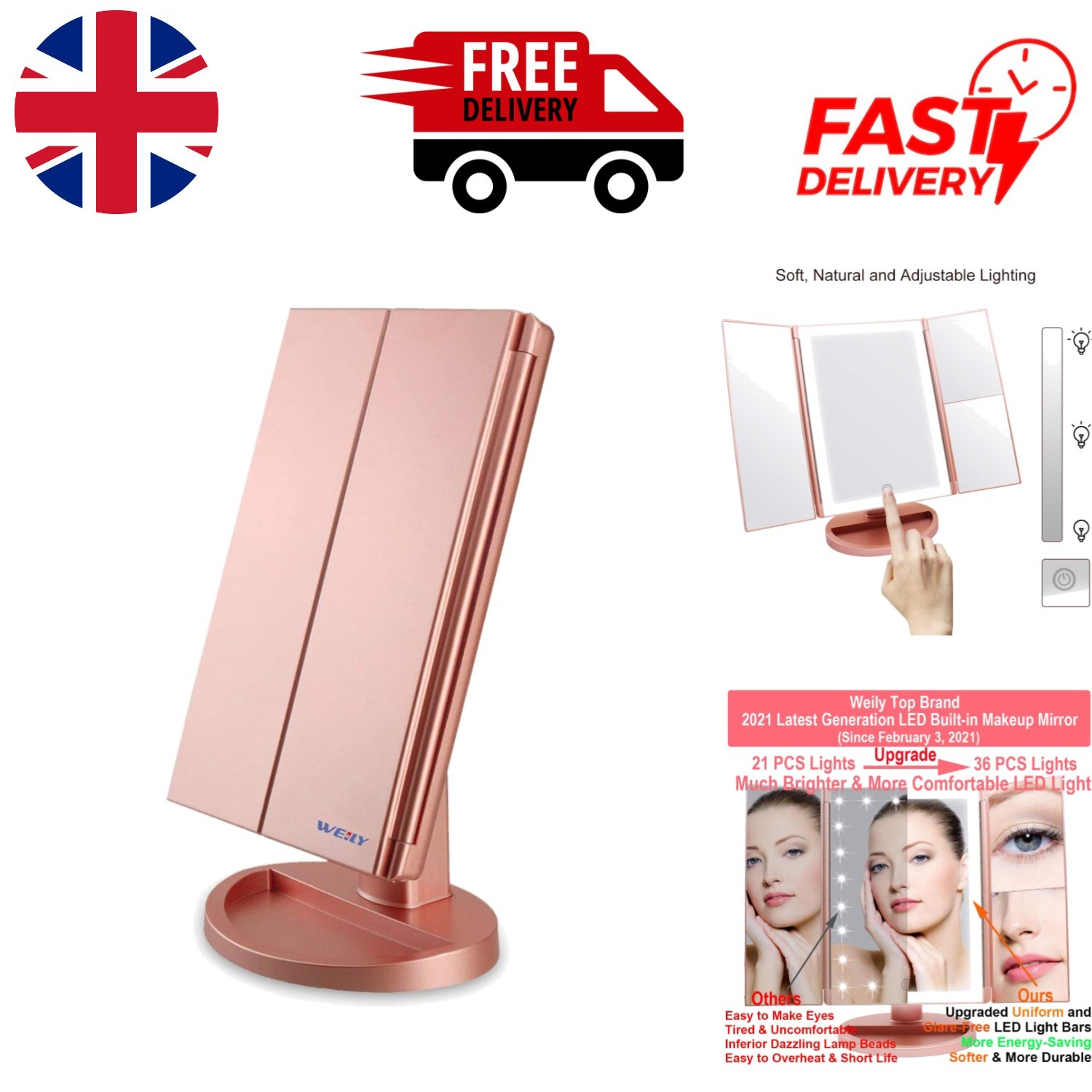 Super Fast Anti-fog LED ILLUMINATED Bathroom Mirror Unique Gold Makeup Mirror