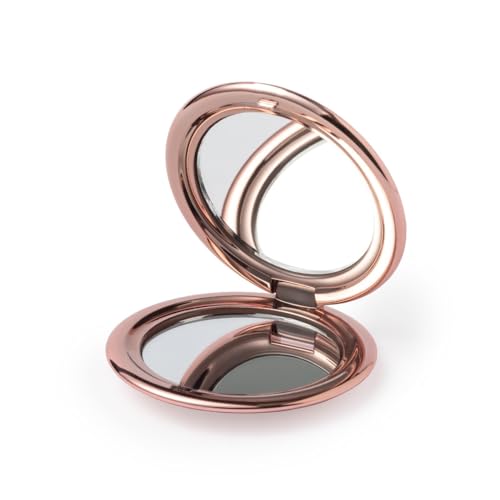 eBuyGB Rose Gold Metallic Compact Makeup Mirror, Small 1X/2X Magnifying Round Double Sided Pocket Mirror, Portable Folding Mirror for Travel, Birthday