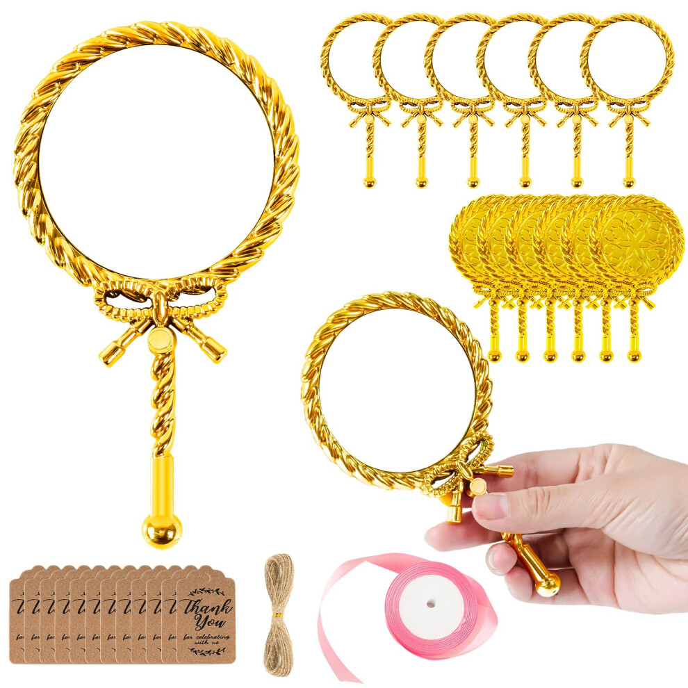 12 Pcs Vintage Handheld Mirrors with Handle, Gold Compact Makeup Mirror Set for Travel and Parties