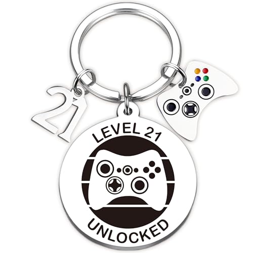 Aurmonigo Happy 21st Birthday Gifts - Gaming Keyring for Him Keepsake Presents Game Controller Decoration Keychain, from Family Grandmother Mum Dad Best Friend Key Ring Gift for 21 Year Old