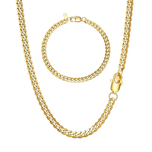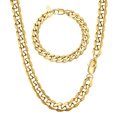 Cuban Gold Chain Men's Necklace, Classic Tarnish-Resistant Stainless Steel Curb Chain Daily Wear Jewelry for Men, Boys, Teens & Women