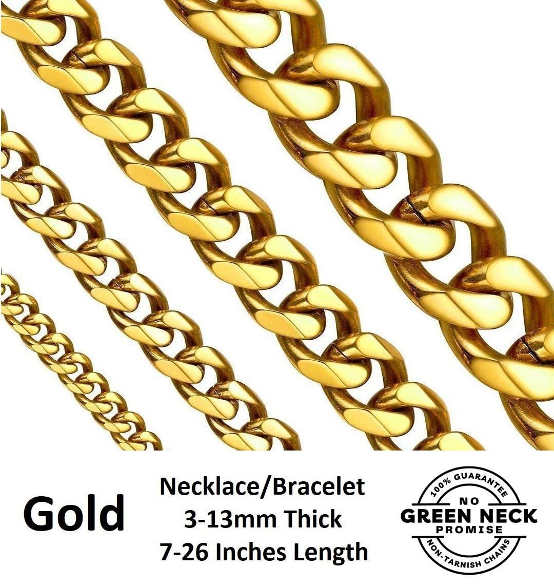 *UK SHOP* 316L STAINLESS STEEL GOLD CUBAN BRACELET NECKLACE MENS CURB LINK CHAIN