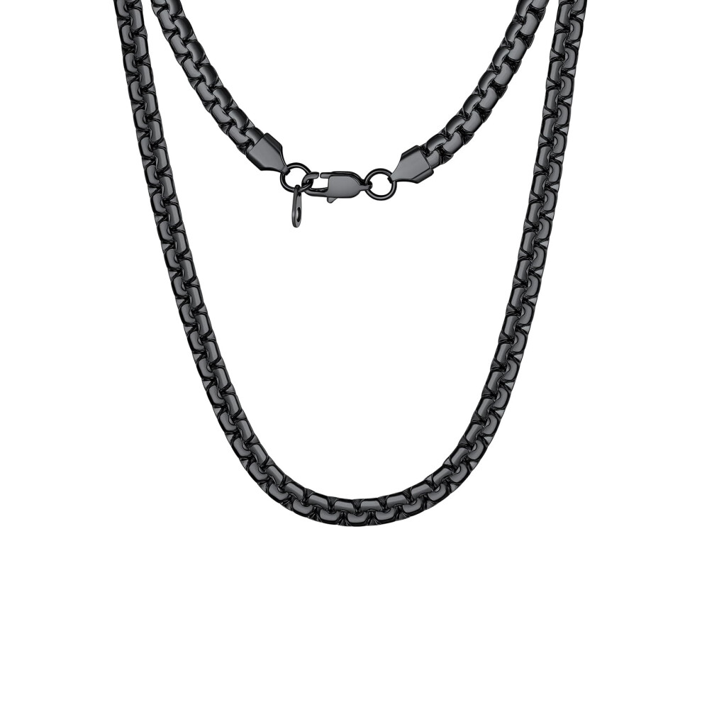 GoldChic Mens Necklace Chain Black Necklace for Men Stainless Steel Sturdy 6MM 22inch Long Round Box Chain Link Hypoallergenic Men's Hip Hop Jewellery
