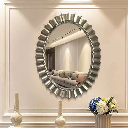 Zhoudong European Style Luxury Vintage Vanity Mirror 28"x35", Gold Oval Wall Mirror, Waterproof Frame, for Home Decor Living Room Hallway(Silver)