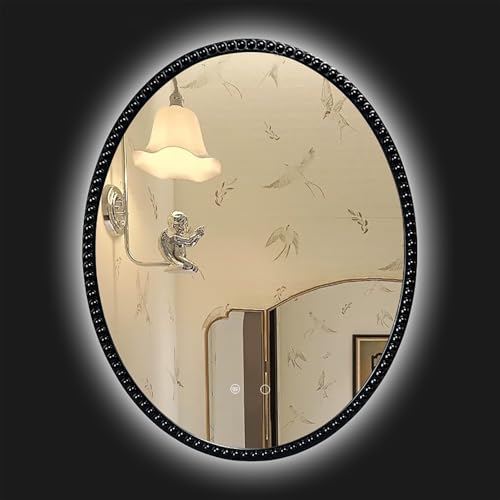 Zhoudong Oval Gold Vintage Mirror for Vanity 28", 3 Colors Light Wall Bathroom Mirror with Backlit Dimmable, Anti-Fog, PU Beaded Frame, 33"/85cm(Black,22"x28"/55x70cm)