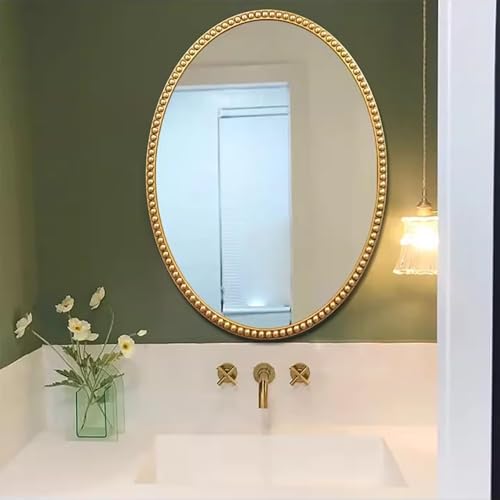 Zhoudong Beaded Antique Makeup Mirror 22"×28", Gold Oval Bathroom Vanity Mirror, 28"×33" Wall Mounted, Retro Silver Frame, for Entryway Dressing Room(Gold,55x70cm)
