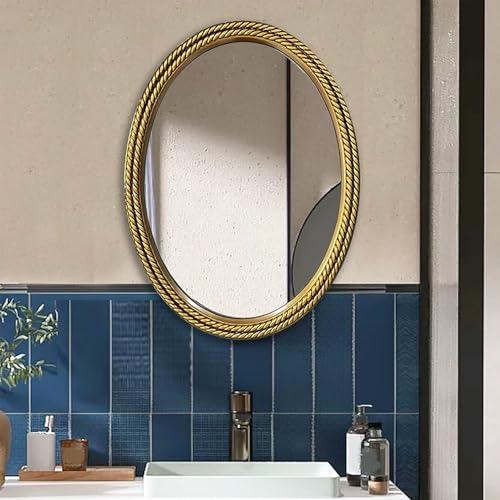 Zhoudong Vintage Black Decorative Mirror with PU Frame, French Ornate Oval Vanity Mirror, 28" 36" Wall Mounted, Gold Antique, for Bathroom Bedroom(Gold,50x70cm)