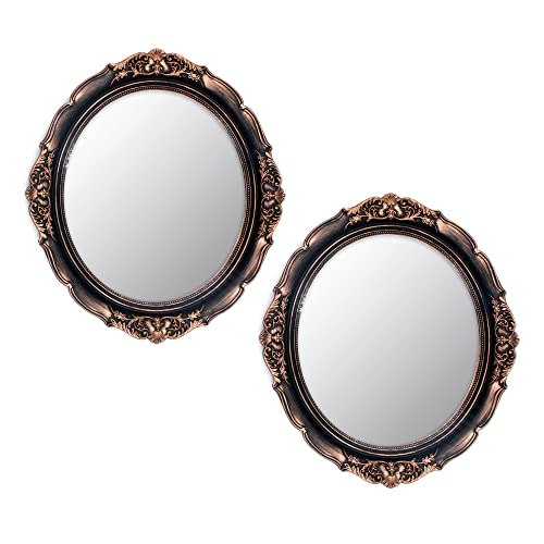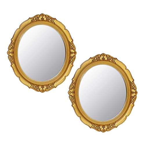 Eaoundm 13.1 x 14.8 inchs Decorative Wall Mirror,Vintage Hanging Mirrors for Bedroom Living-Room Dresser Decor Oval (Vintage Gold 2 Pcs) Plastic Frame