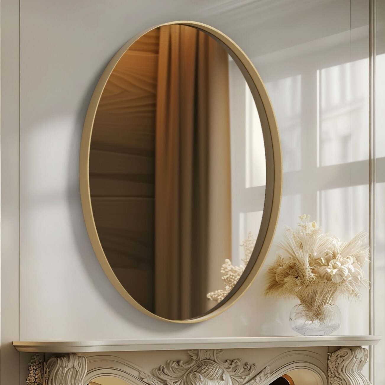 Large Gold Oval Luxury Makeup Mirror Wall Art Mirror for Bathroom & Living Room
