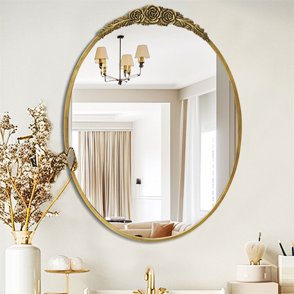 Baroque Gold Oval Wall Mirror Vintage Makeup Mirror Dressing Room Entryway Foyer