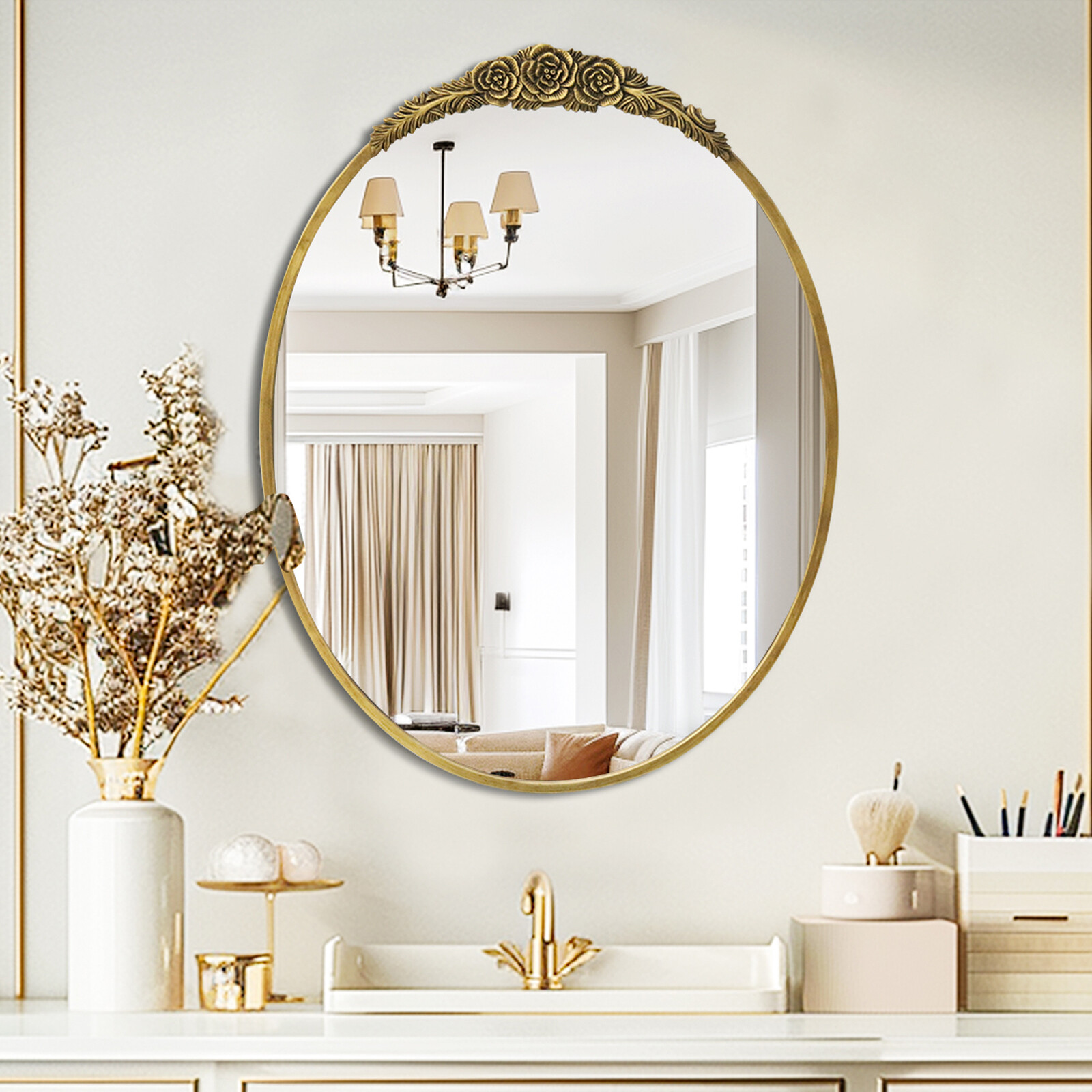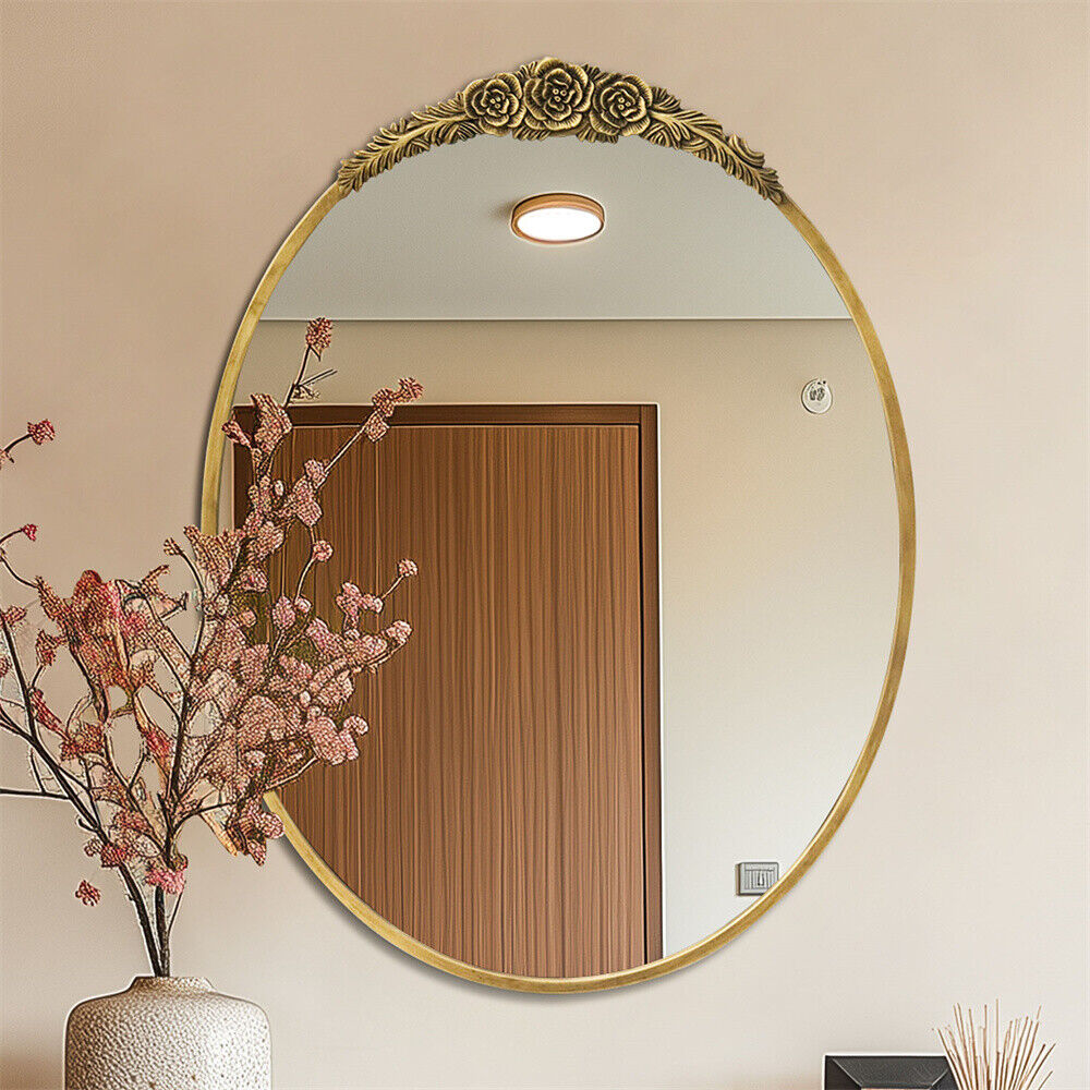 24x32" Brass Gold Oval Wall Mirror Carved Rose Crown Gothic Bohemian Mirror Dec
