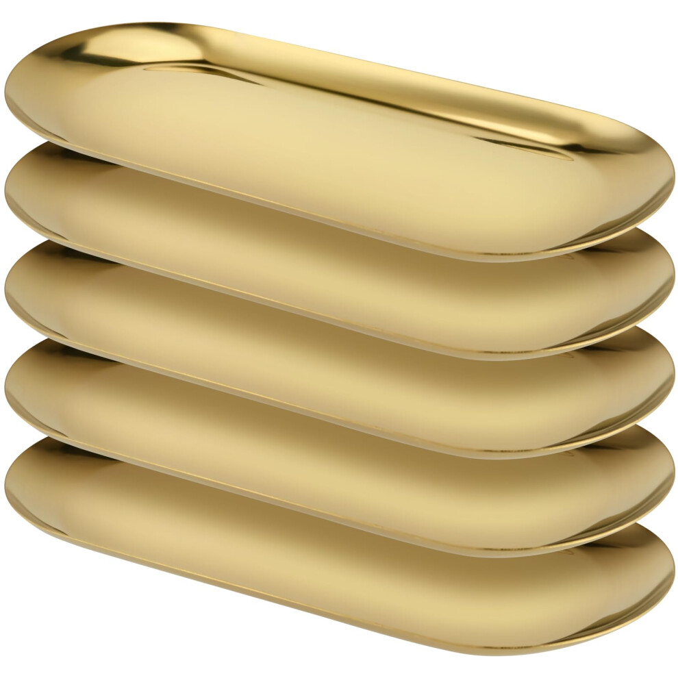 YUENPUN 5 PCS Gold Oval Mirror Trays, Stainless Steel Jewellery Trays, Vanity Tray for Makeup, Jewellery, Small Item Organising, 23 x 9cm
