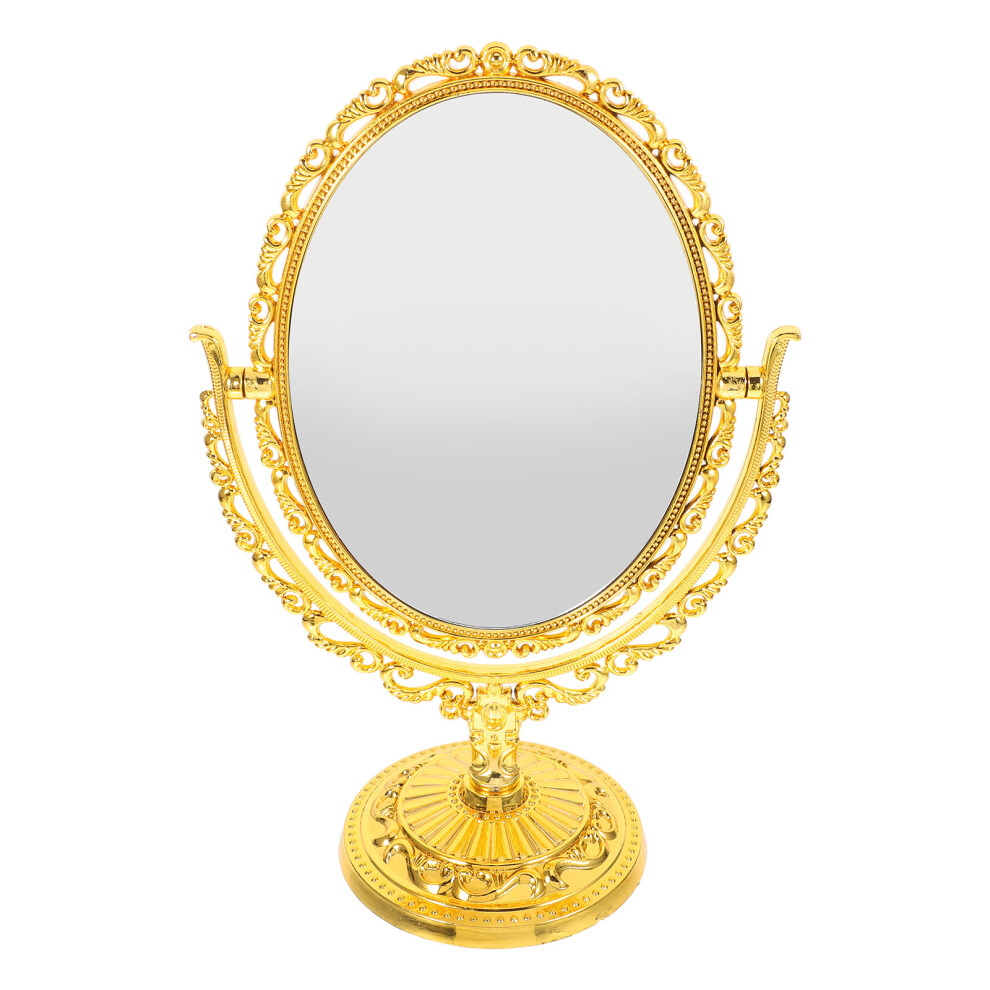 Dressing Table Mirror Oval Gold Desk Mirror Metal Frame Portable 360° Swivel w