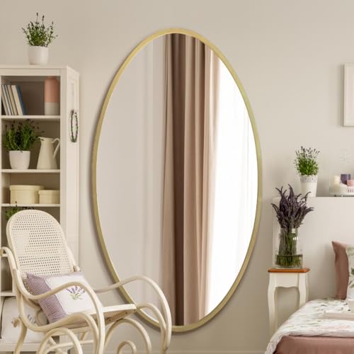 Gold Oval Wall Mirror Full Length Mirror, 40cm W x 120cm H