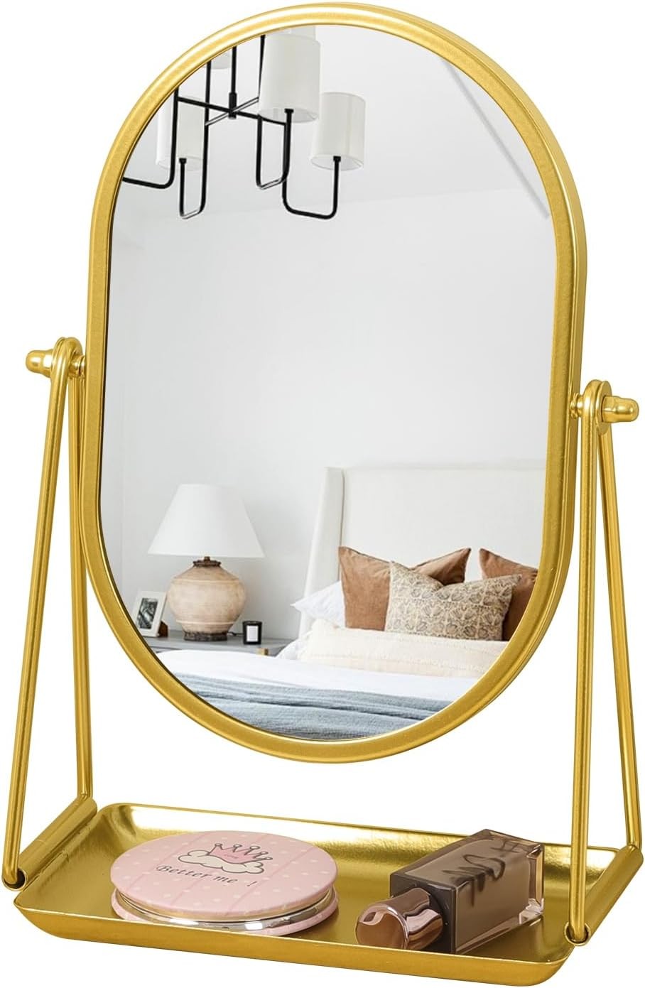 Table Vanity Mirror Gold Oval Desk Makeup Mirror with Tray 360°Adjustable Rota