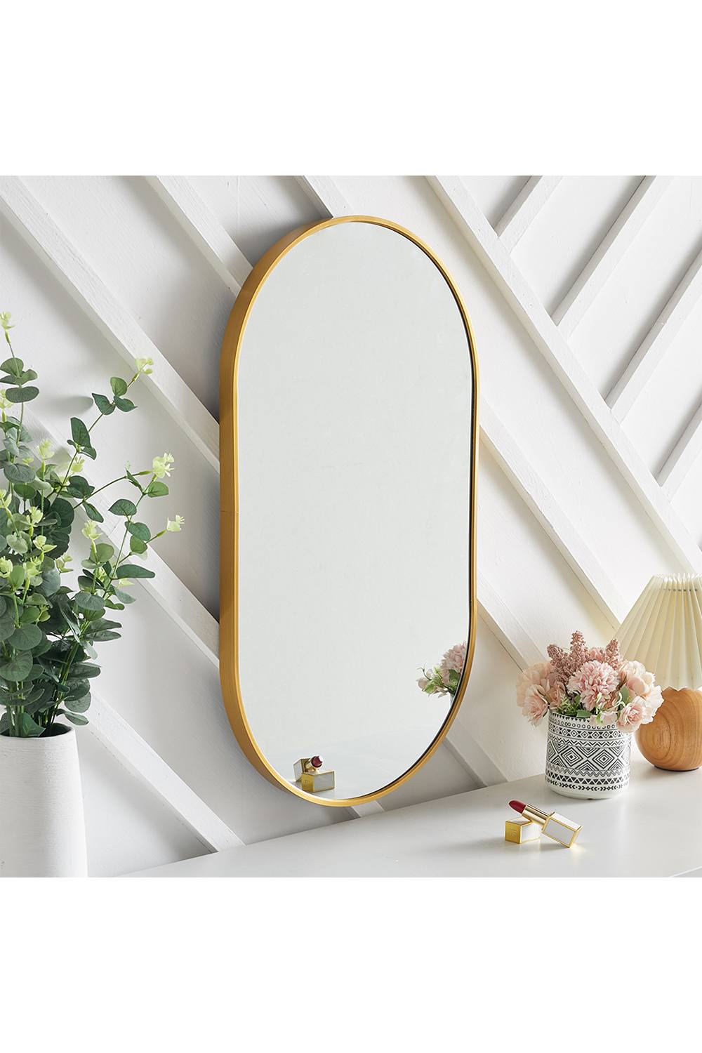 Living and Home 40x70cm Modern Gold Oval Metal Wall Mirror