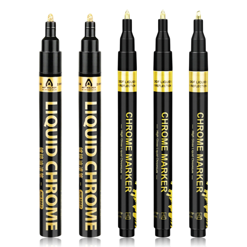 5 PCS Metallic Paint Pens, Permanent Markers, Waterproof and Reflective for Resin Painting, Resin, Metal, Glass, Plastic Coloring ( Gold )