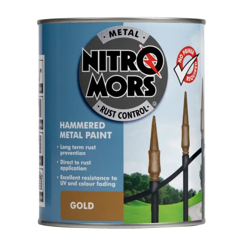 Nitromors Hammered Metal Paint Gold, 750 ml, UV Resistant, No Primer Needed, Ideal for Doors & Garden Furniture, Durable Rust Protection