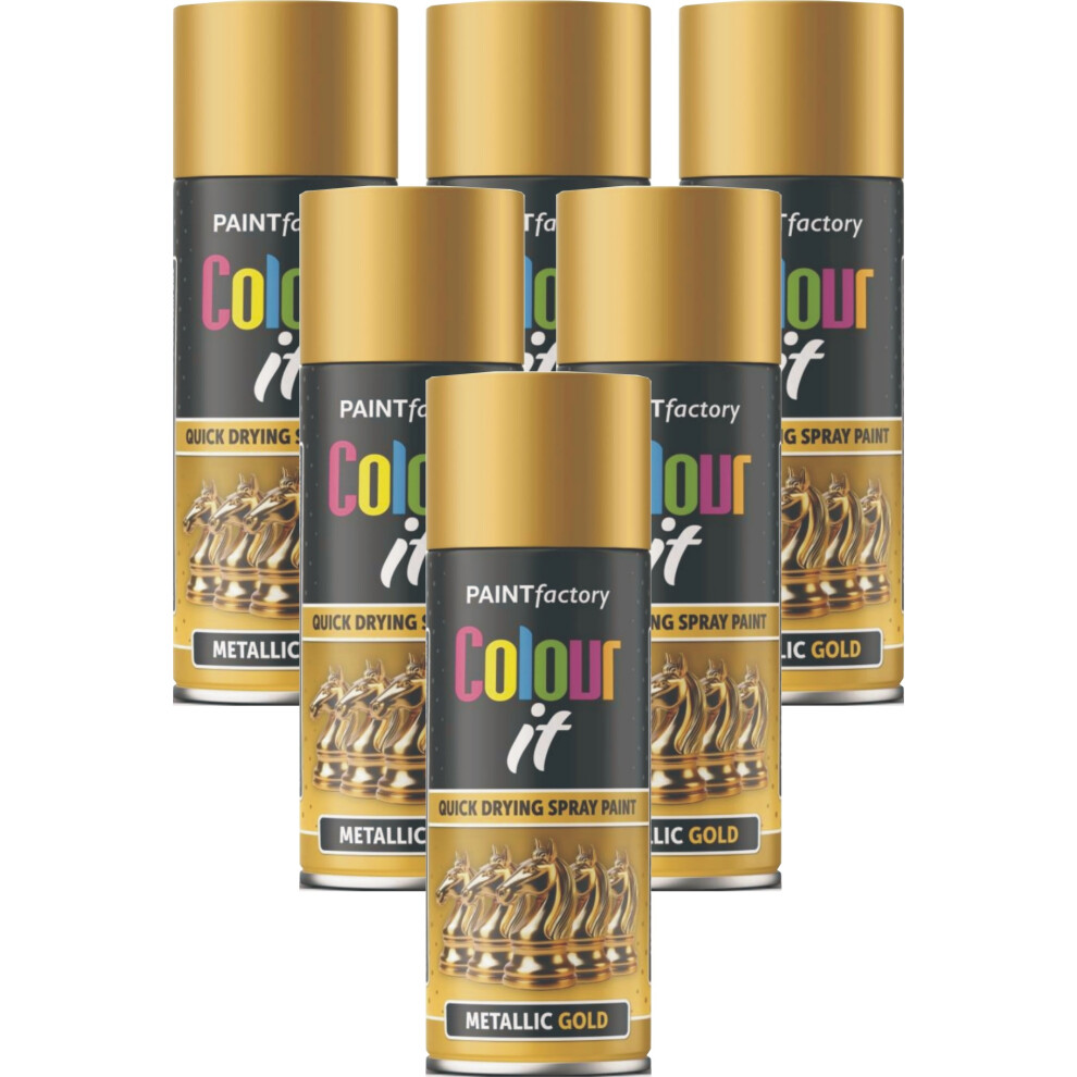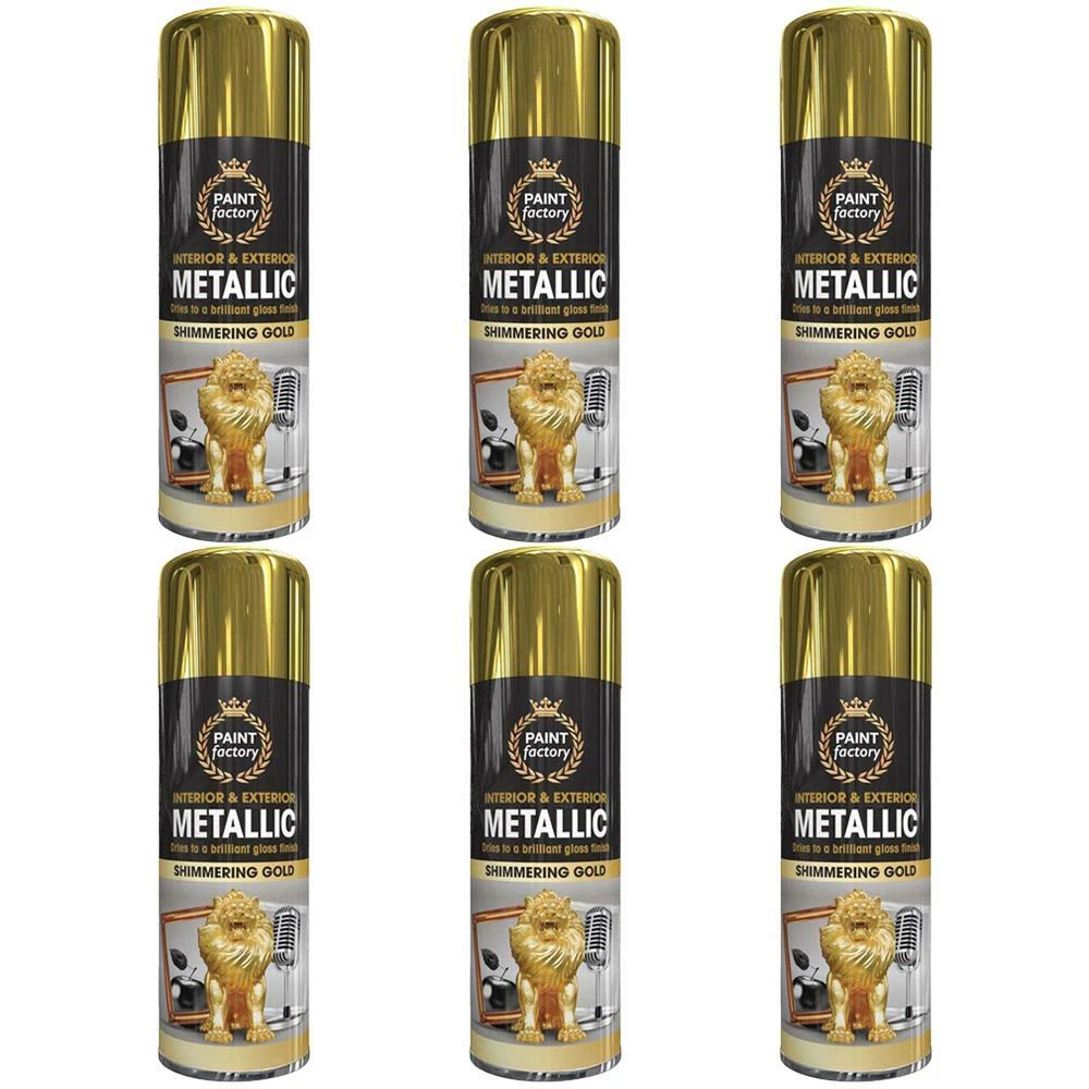 6 x 400ml METALLIC GOLD Spray Paint Aerosol Gloss Wood Metal Plastic