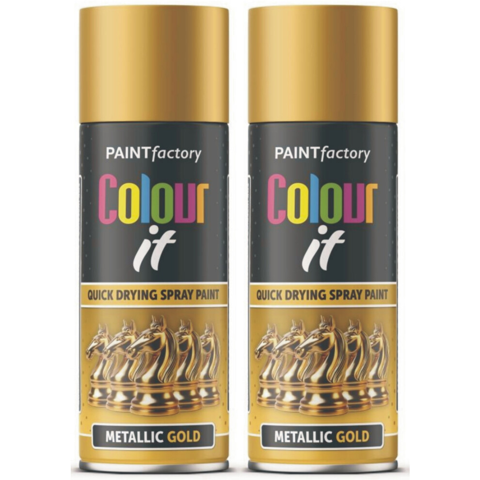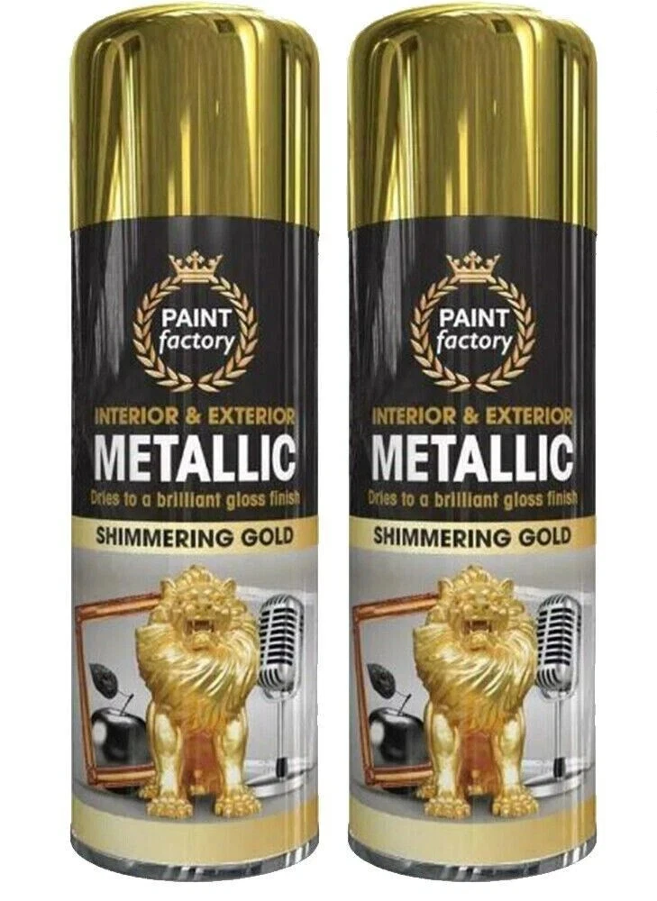 2 x 400ml METALLIC GOLD Spray Paint Aerosol Gloss Wood Metal Plastic