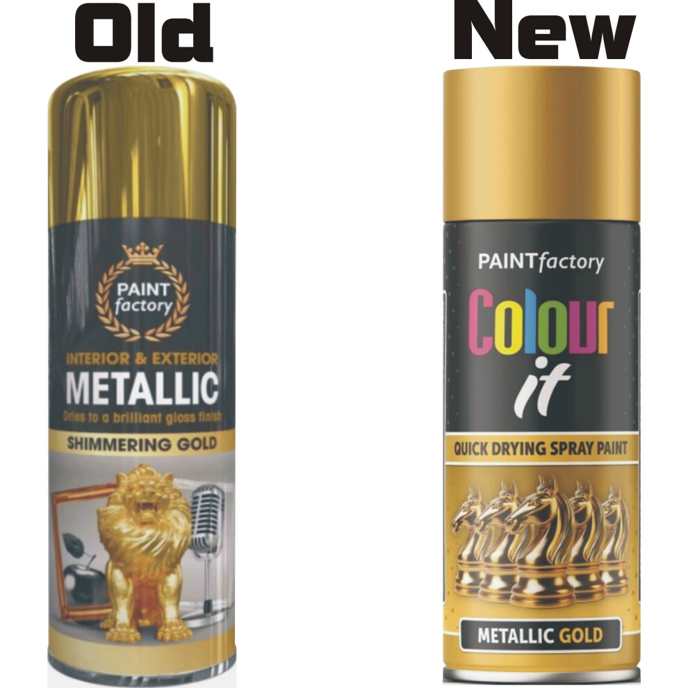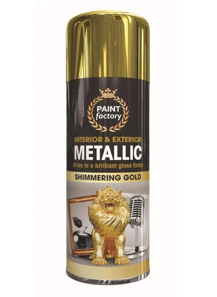 Paint Factory® 400ml Professional Quality Fantastic Finish All-Purpose Interior Exterior Household Spray Paint for Wood Metal Plastic Ceramics & More (Metallic Gold)