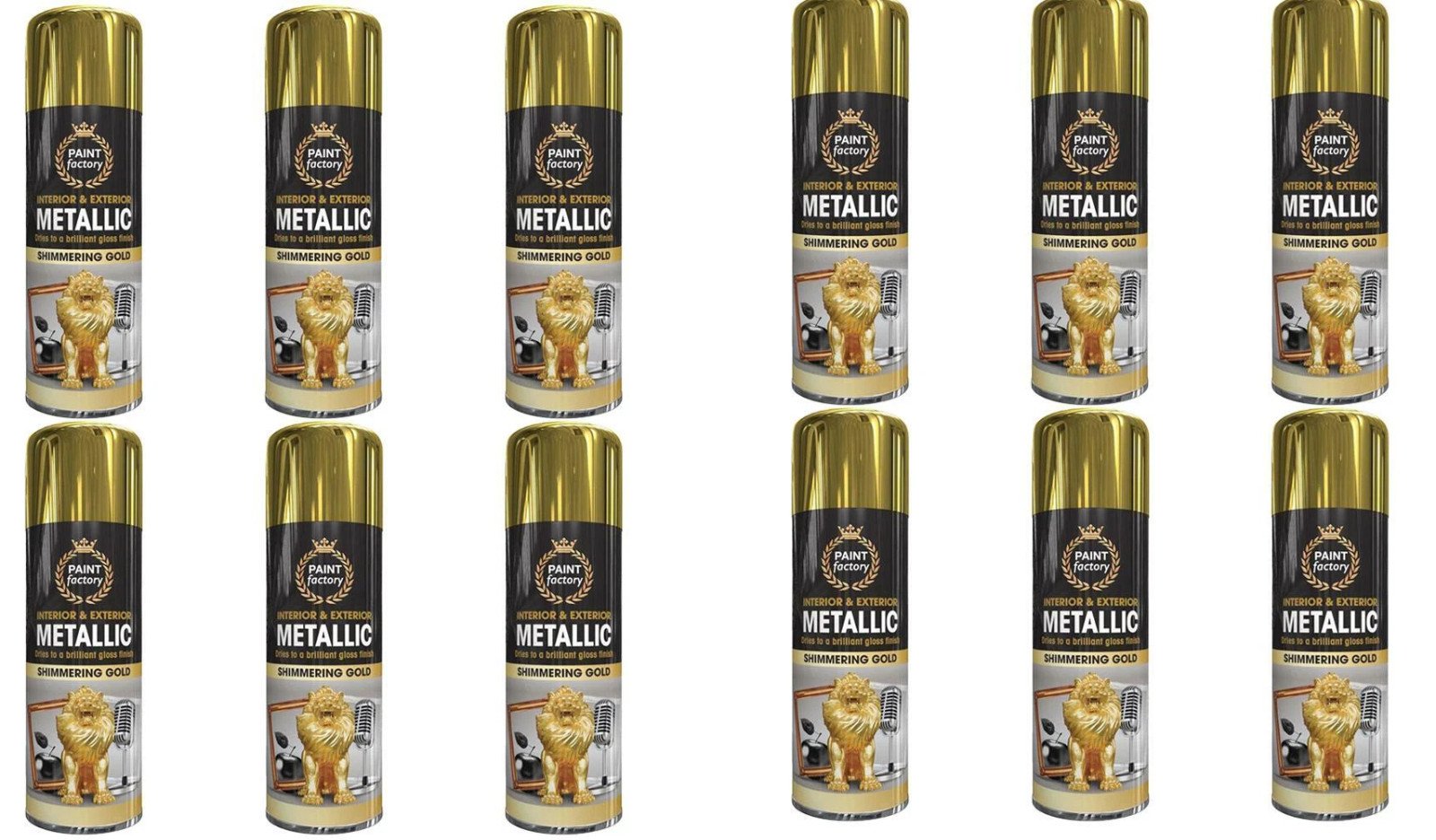 12x New 400ml Gold Metallic Spray Paint Aerosol Matt Gloss Finish for Wood Metal