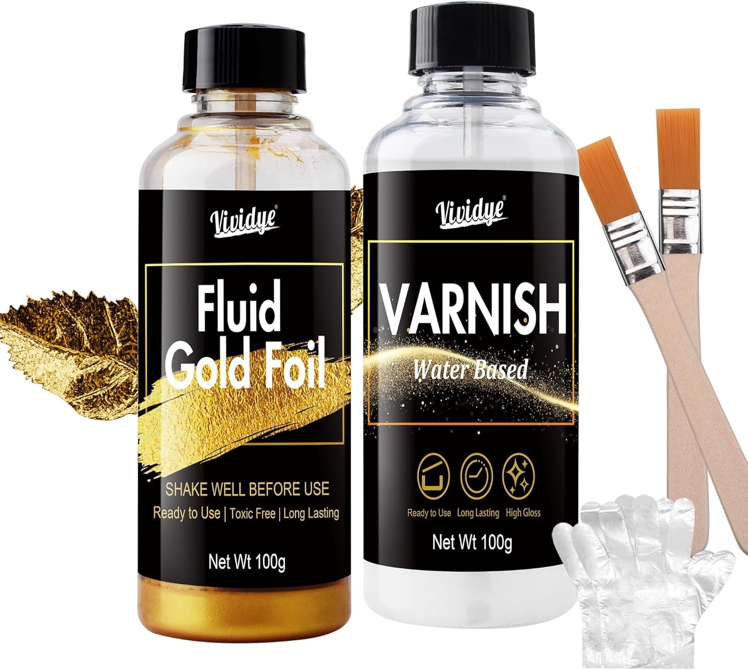 Acrylic Paint Metallic, 200ml Liquid Gold Leaf Paint Kit for Metal, Wood, Fabri