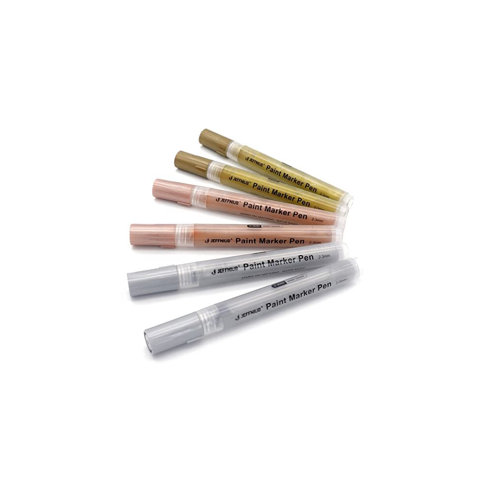 JEFFNIUB Gold Paint Pens with Silver Rose Gold Acrylic paint Pens for Rock Painting Wood Fabric Glass Canvas Scrapbooking Card DIY Metallic Acr