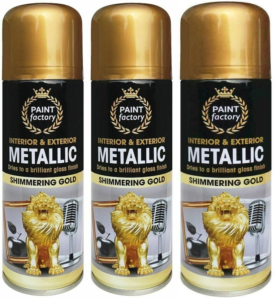 3 x 400ml METALLIC GOLD Spray Paint Aerosol Gloss Wood Metal Plastic